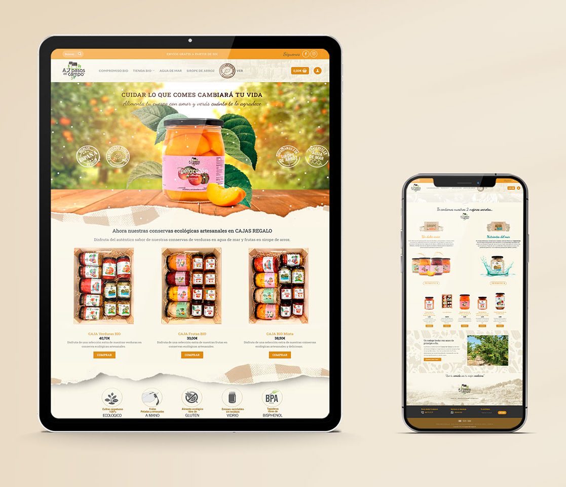 Cuando visit茅 por primera vez a Joaqu铆n en su nave de conservas a los pies de la monta帽as de Hond贸n de las Nieves, me invadi贸 un intenso aroma a peras frescas reci茅n peladas que no recordaba desde mi ni帽ez. Joaqu铆n es uno de esos clientes que dejan huella: comprometido, generoso y con una profunda convicci贸n de que cada gesto cuenta para hacer del mundo un lugar mejor. Su marca necesitaba hablar ese mismo lenguaje. El de la alegr铆a sencilla, la honestidad de lo natural y la belleza de lo cotidiano para transmitir lo que realmente ofrece: productos hechos con mimo, a tan solo dos pasos del campo.